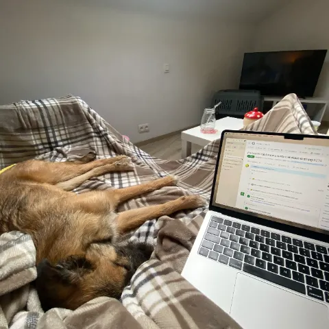 I'm so lucky to have a job that allows me to work from my sofa under a blanket with my dog laying by my side π«